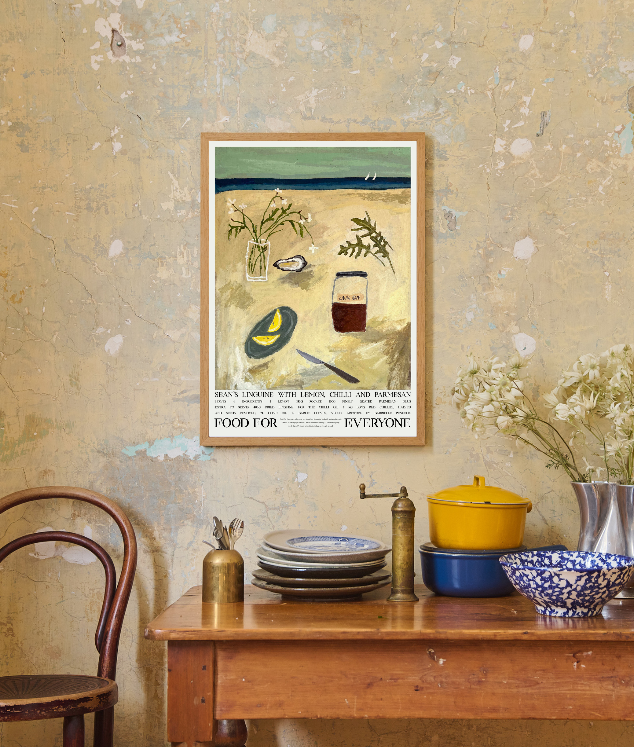 A focus on simplicity guides both Sean's in Bondi and Gabrielle's creations. Before embarking on her painting of Sean's infamous Linguine with Lemon, Chilli and Parmesan, artist Gabrielle dined with Sean at his seaside spot. In her piece, she invites you into that moment.