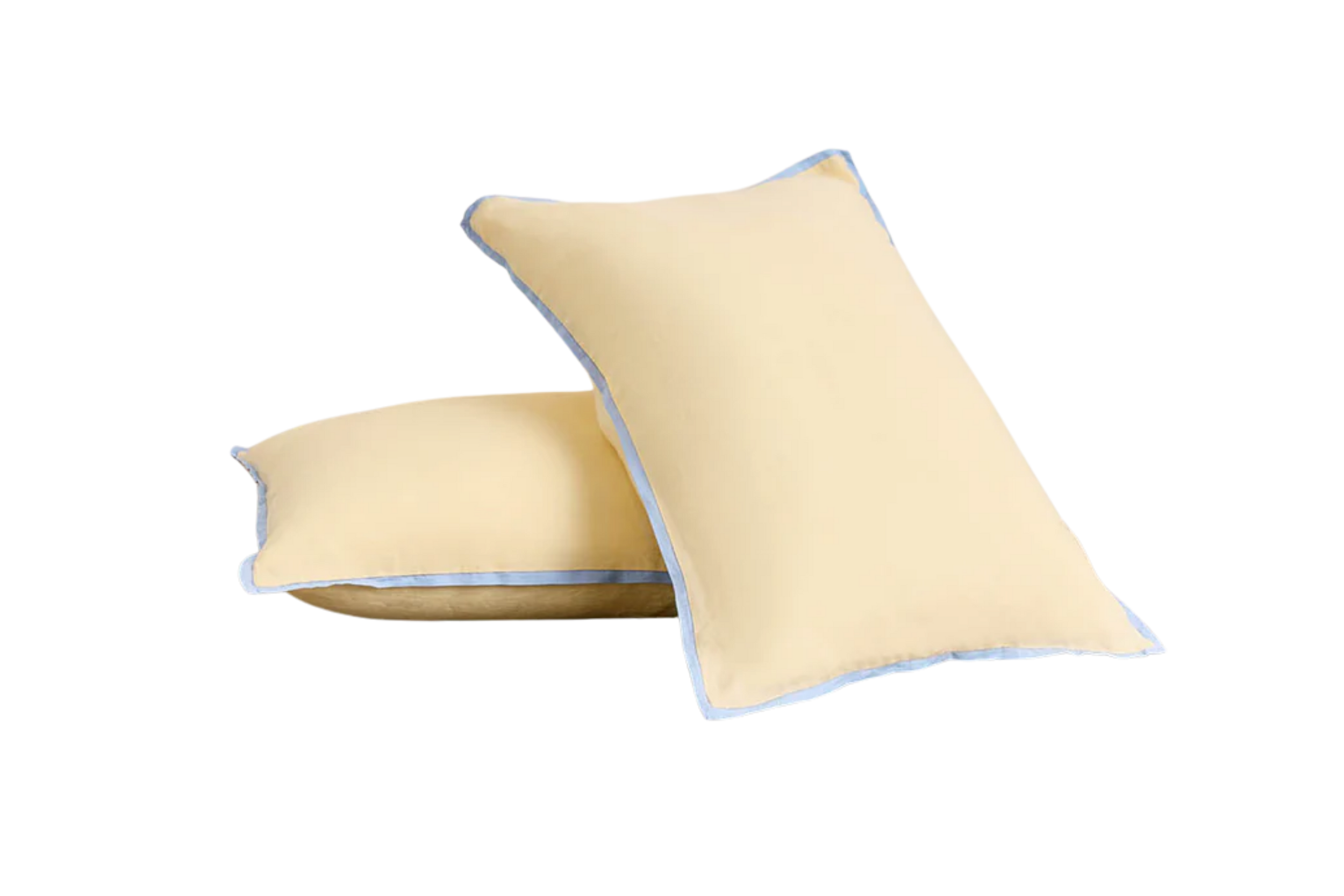 Hommey bedding is always alive with colour - gone are the days of white sheets being the default but these butter yellow with blue piping are still subtle enough for everyday. Linen is so lovely to sleep on and just gets softer with use, and these pillowcases are made with 100% European Flax Linen keeping you cool in the summer and warm in the winter.