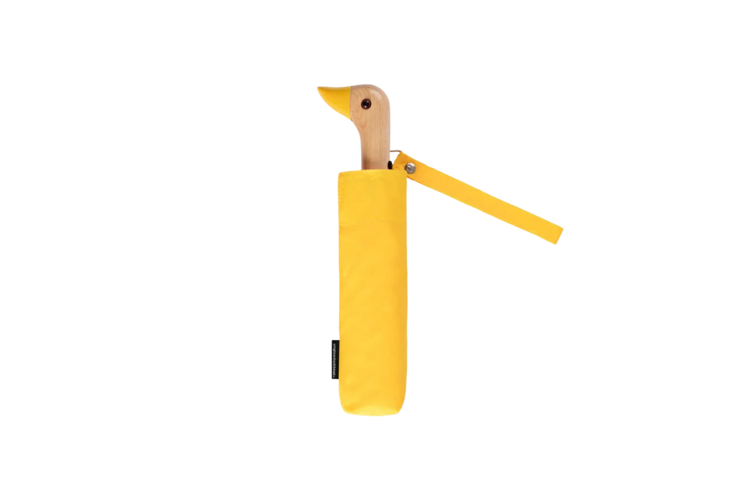 Equal parts artful and joyful, this duck-handled umbrella brightens even the greyest afternoon. It makes me want to jump into puddles with glee!