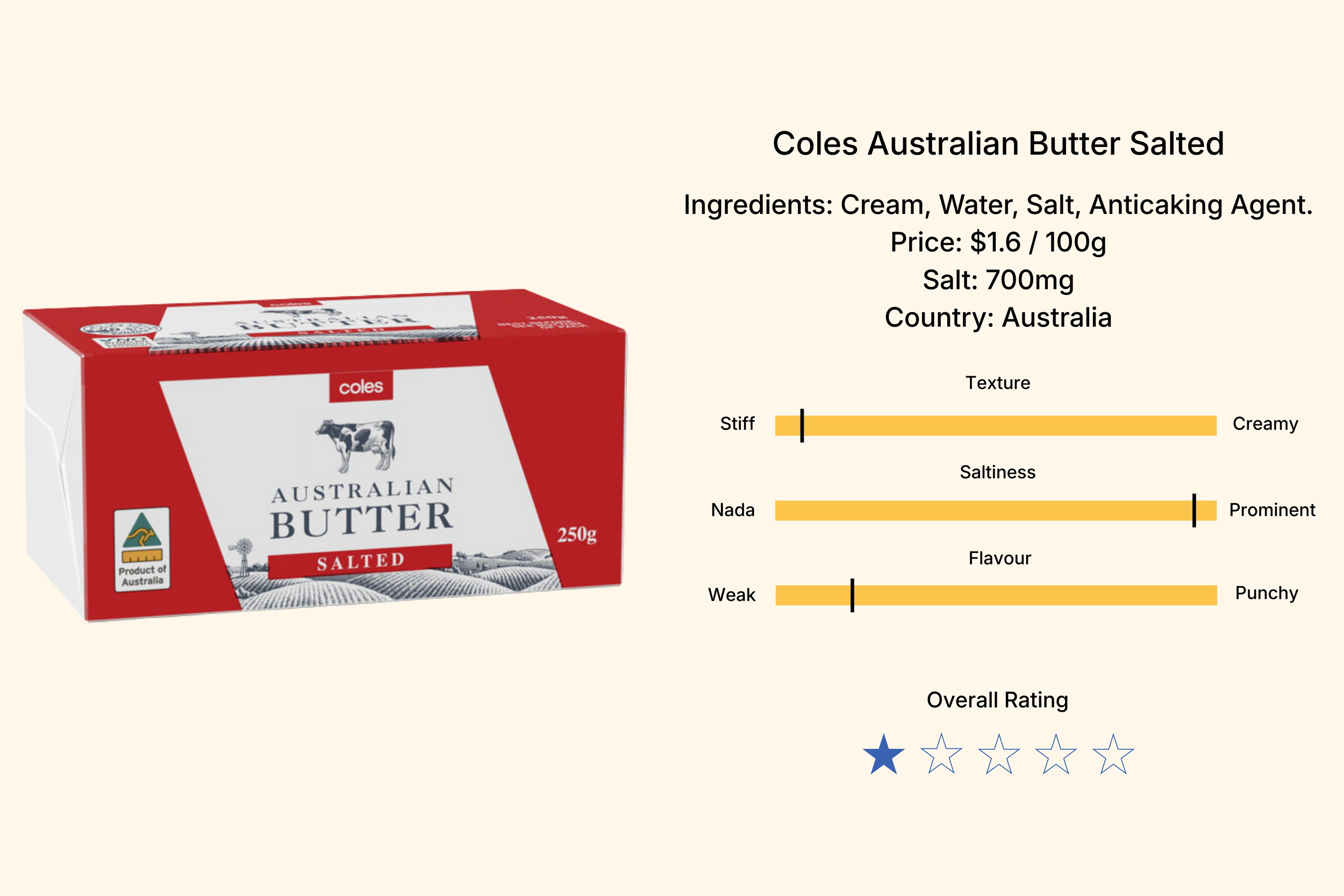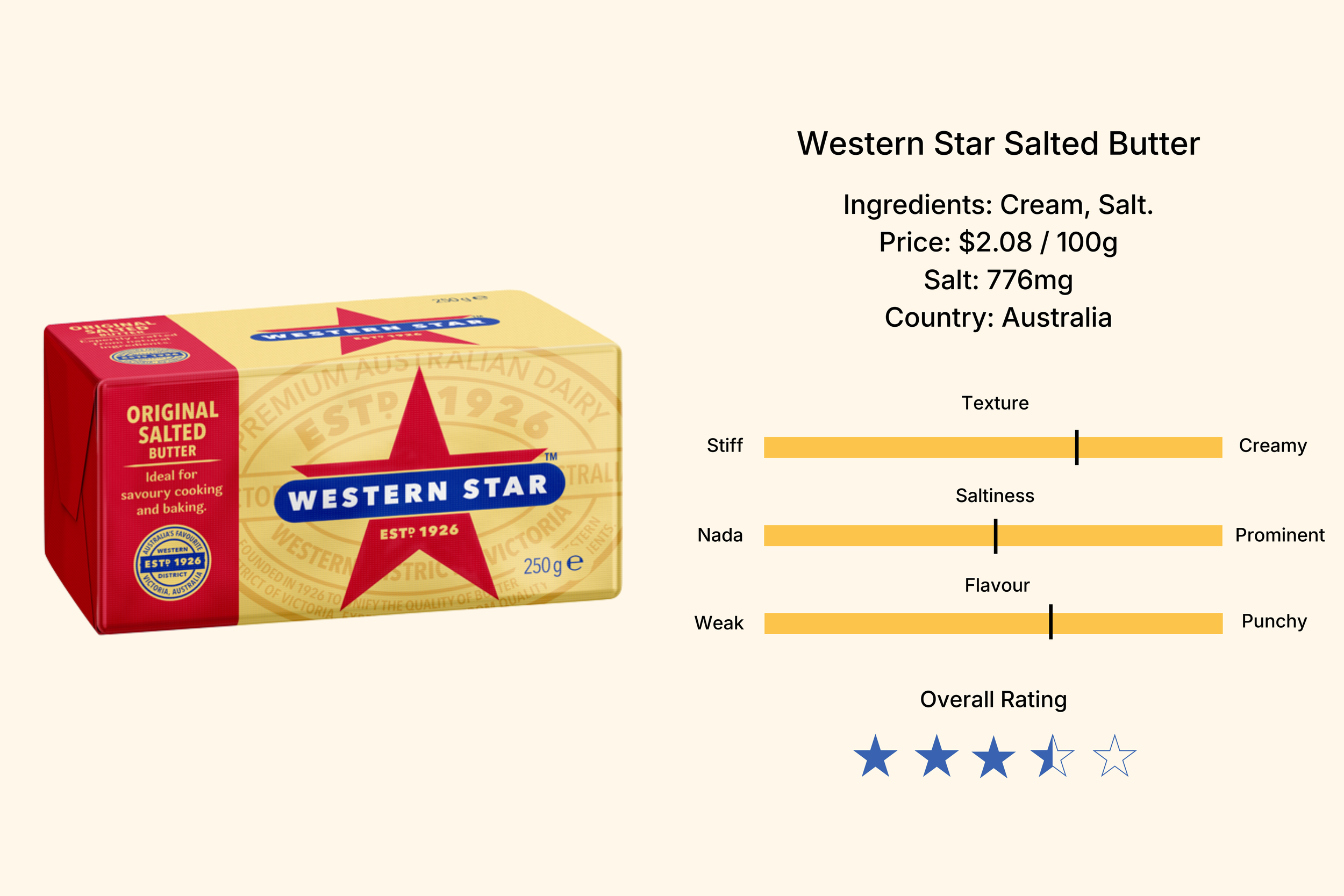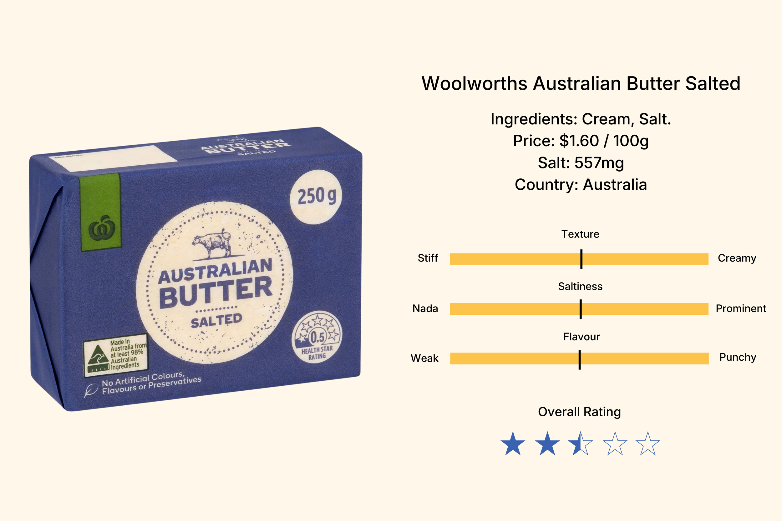 Okay after the Coles homebrand fiasco, we had really low hopes for the Woolies equivalent, but this was a solid butter for the price tag.