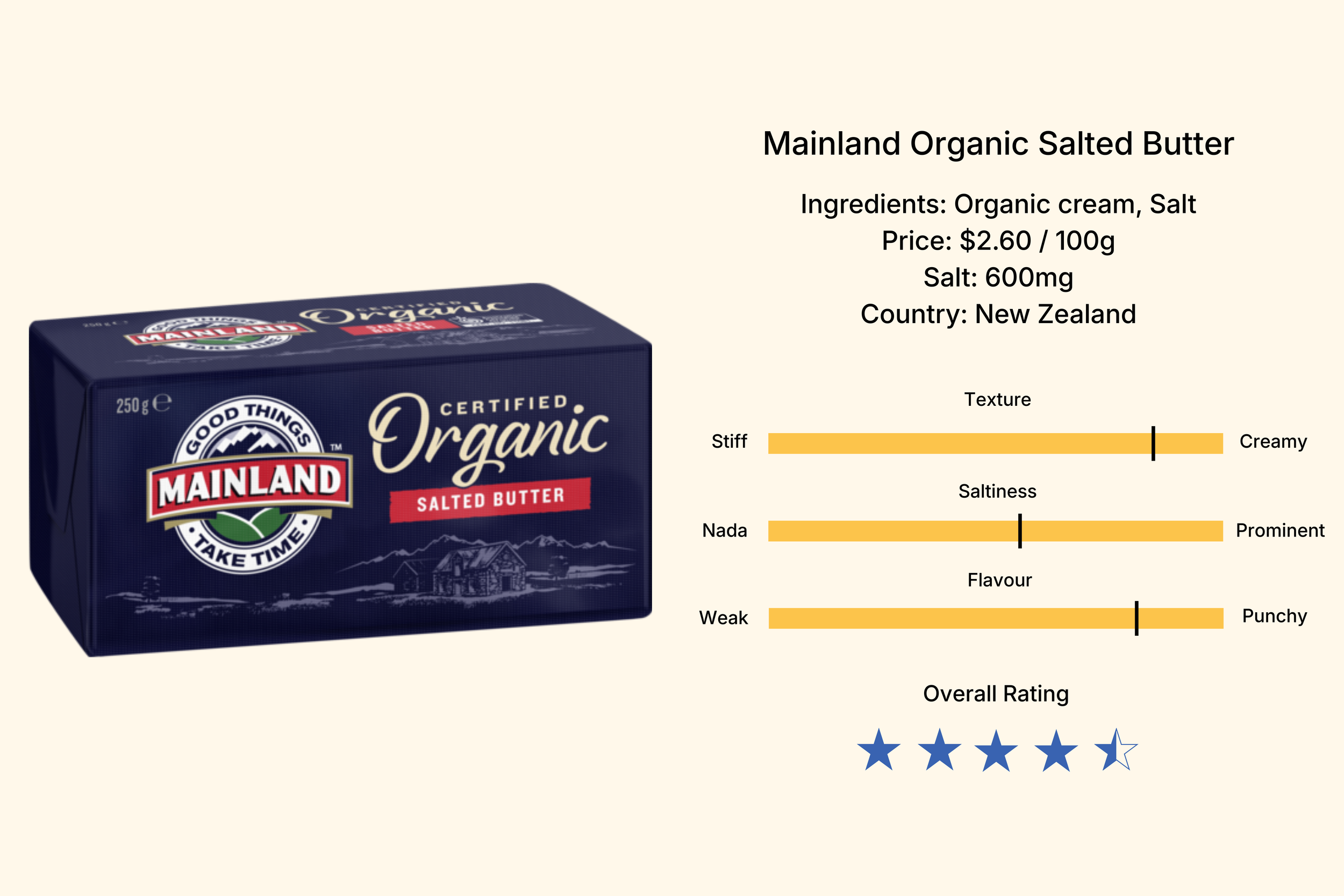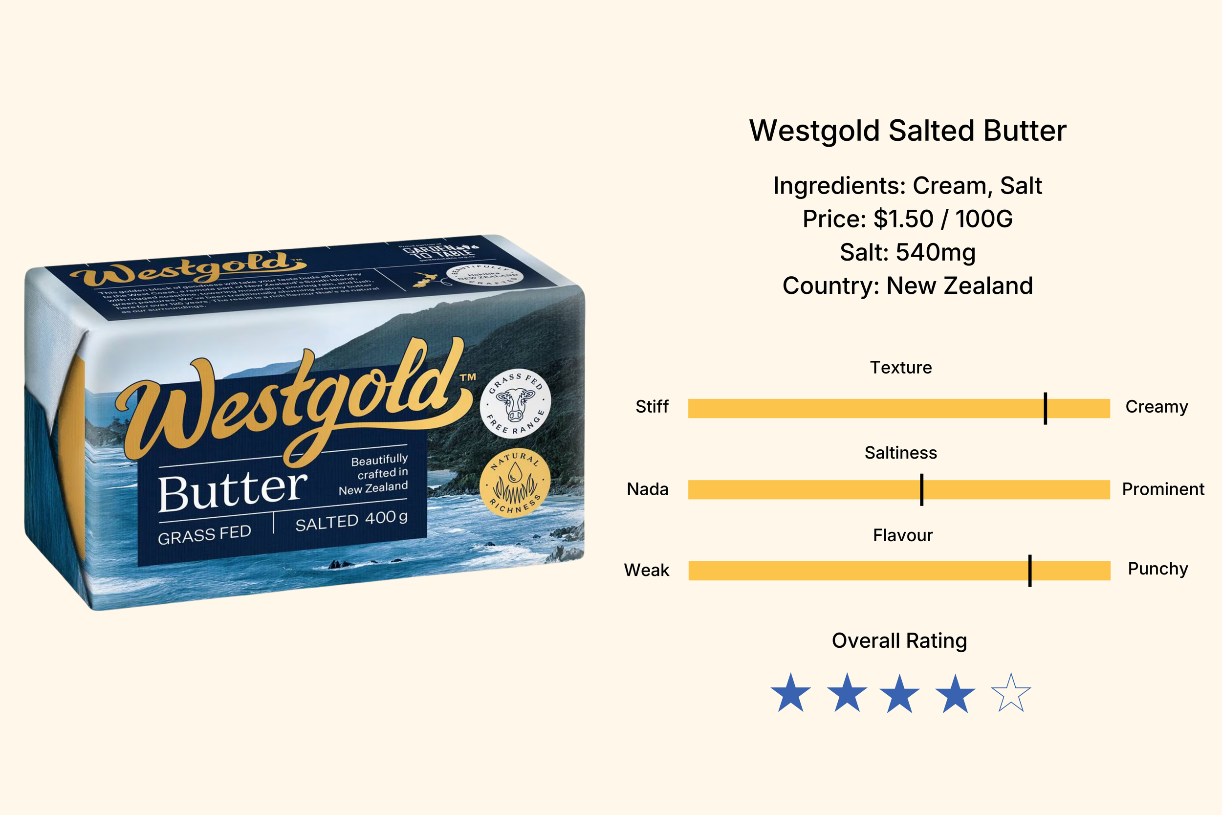 Bright, fresh, grassy, exceptional value, and consistently excellent across cooking, spreading and eating straight. This butter doesn’t just win — it laps the field. A supreme everyday butter.