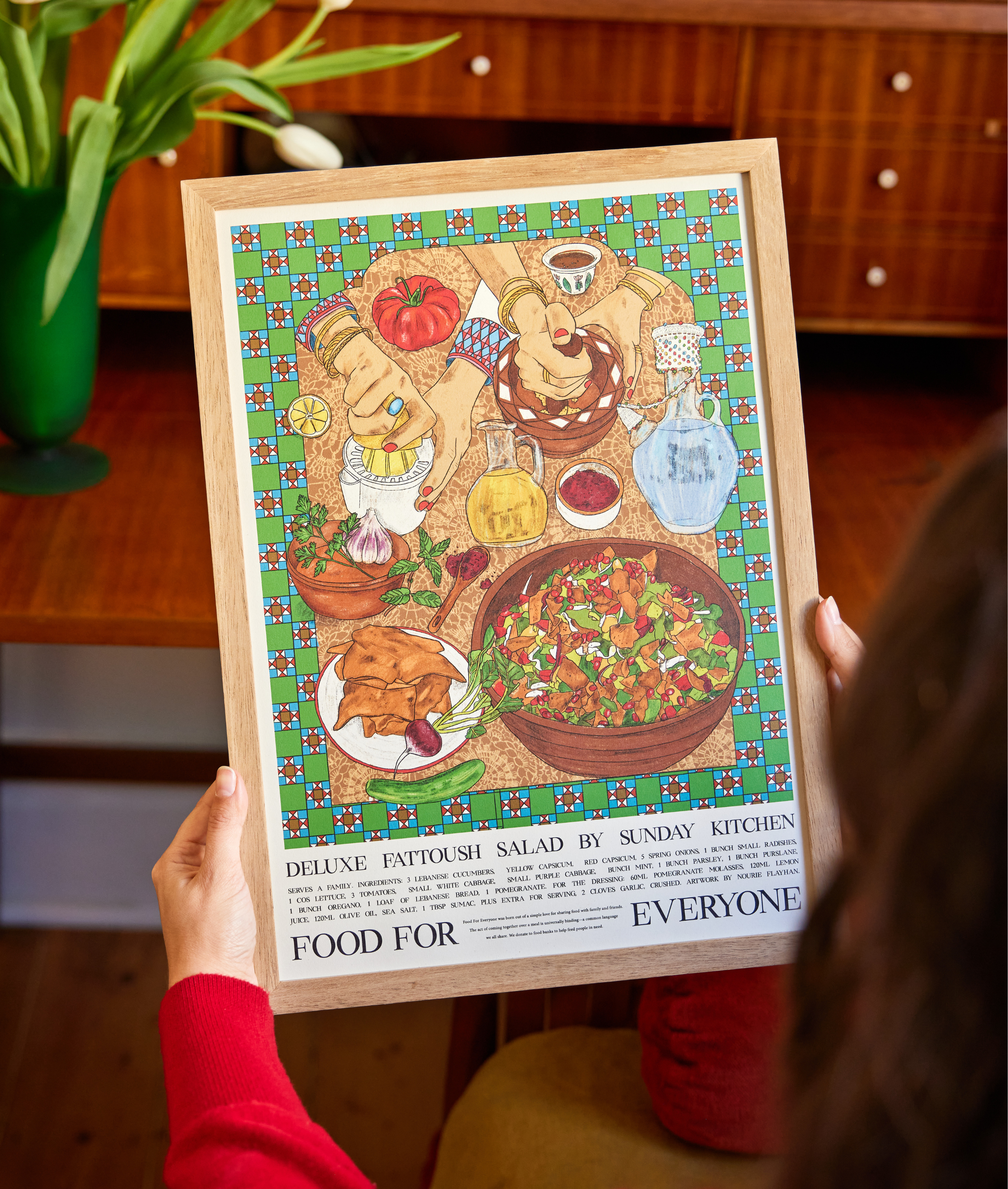 At Food For Everyone, every artwork begins with a recipe, usually contributed by a chef or restaurant we admire. Over the years, that has included people like Dan Hunter of Brae, Josh Niland, Rick Stein, Maggie Beer, Annie Smithers and Julia Busuttil Nishimura, alongside many home cooks whose recipes carry just as much weight.