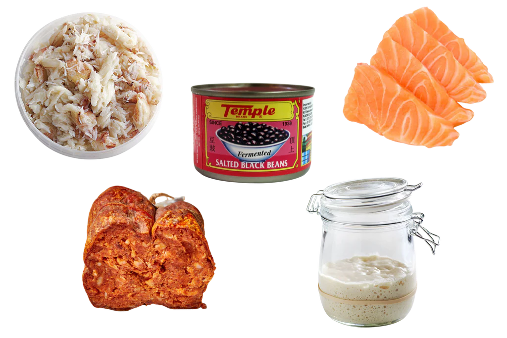 A. I haven’t chosen the obvious things - crab meat, raw fish for sashimi, fermented black beans, nduja, sourdough starter (no I haven’t got a name for it!).