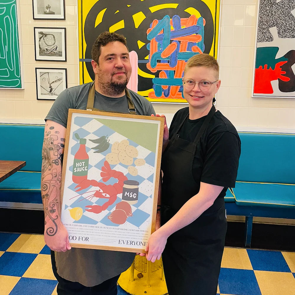 Max has heroed the iconic yabbie among the colourful flavours of seafood boil and a classic gingham tablecloth waiting to be splattered with sauce.