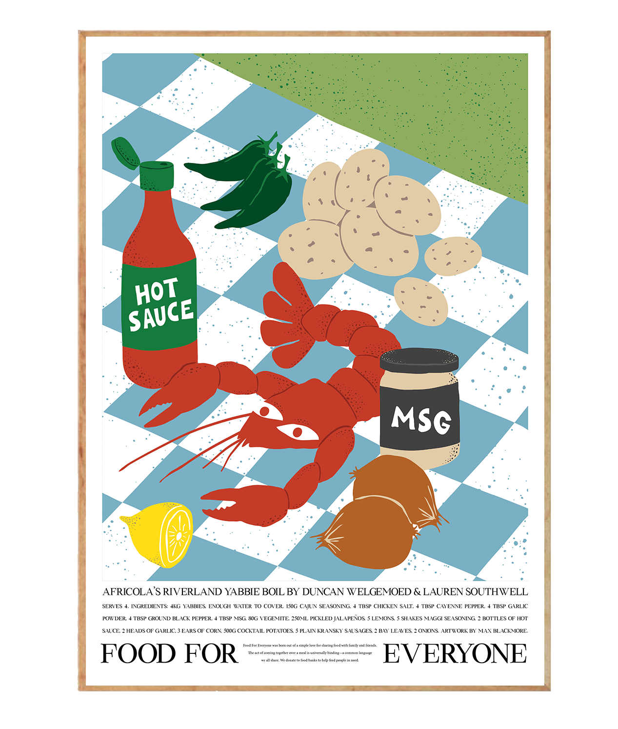 Oozing with cool, this poster by graphic artist Max Blackmore harnesses the wild energy of Africola and their Riverland Yabbie Boil.