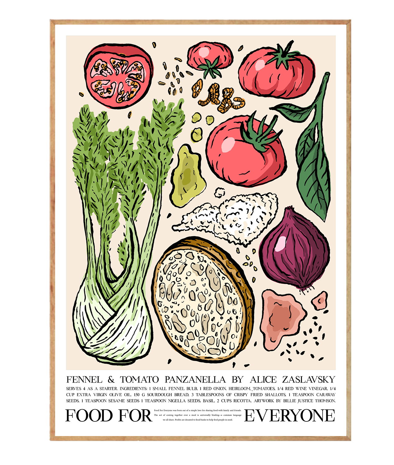 Imagine you've come home from the market on a Saturday laying out all the ingredients to make a vibrant Fennel and Tomato Panzanella with your copy of In Praise of Veg open on the counter—that's exactly what Billie did as she approached this piece.