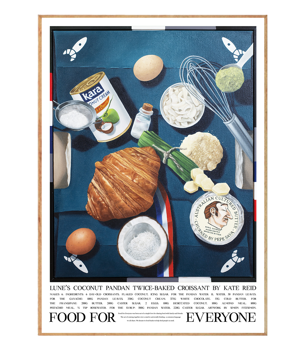 Sharing in her vision of excellence comes this photorealistic oil-painted rendition of Lune’s Coconut Pandan Twice-Baked Croissant by artist Simon Fitzsimon.