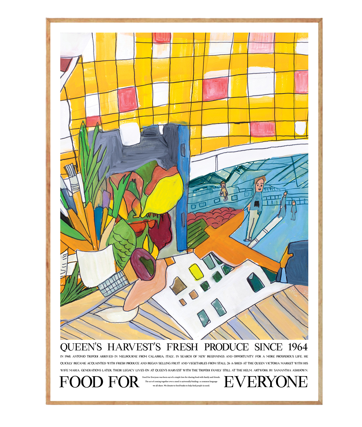 Samantha's use of bright colour and dynamic movement beautifully captures the joy of food that the Tripodi family has brought to the city since 1964 through their beloved family-run grocer.